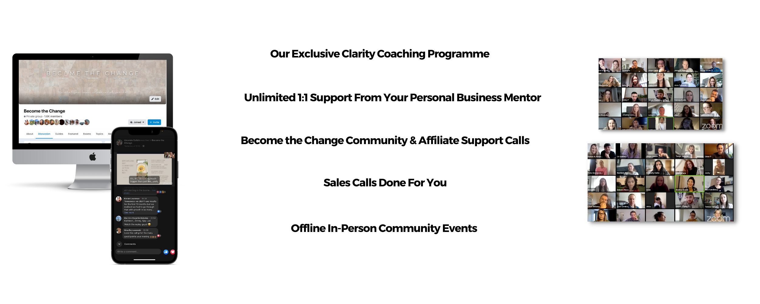 The business opportunity we hold is broken down into two forms. Affiliate & Network Marketing. This involves: 1. Partnering with our chosen partnership becoming an independent distributor, sharing their products & message for them. 2. Optional Personal Coaching & Mentorship to help new business owners to grow.